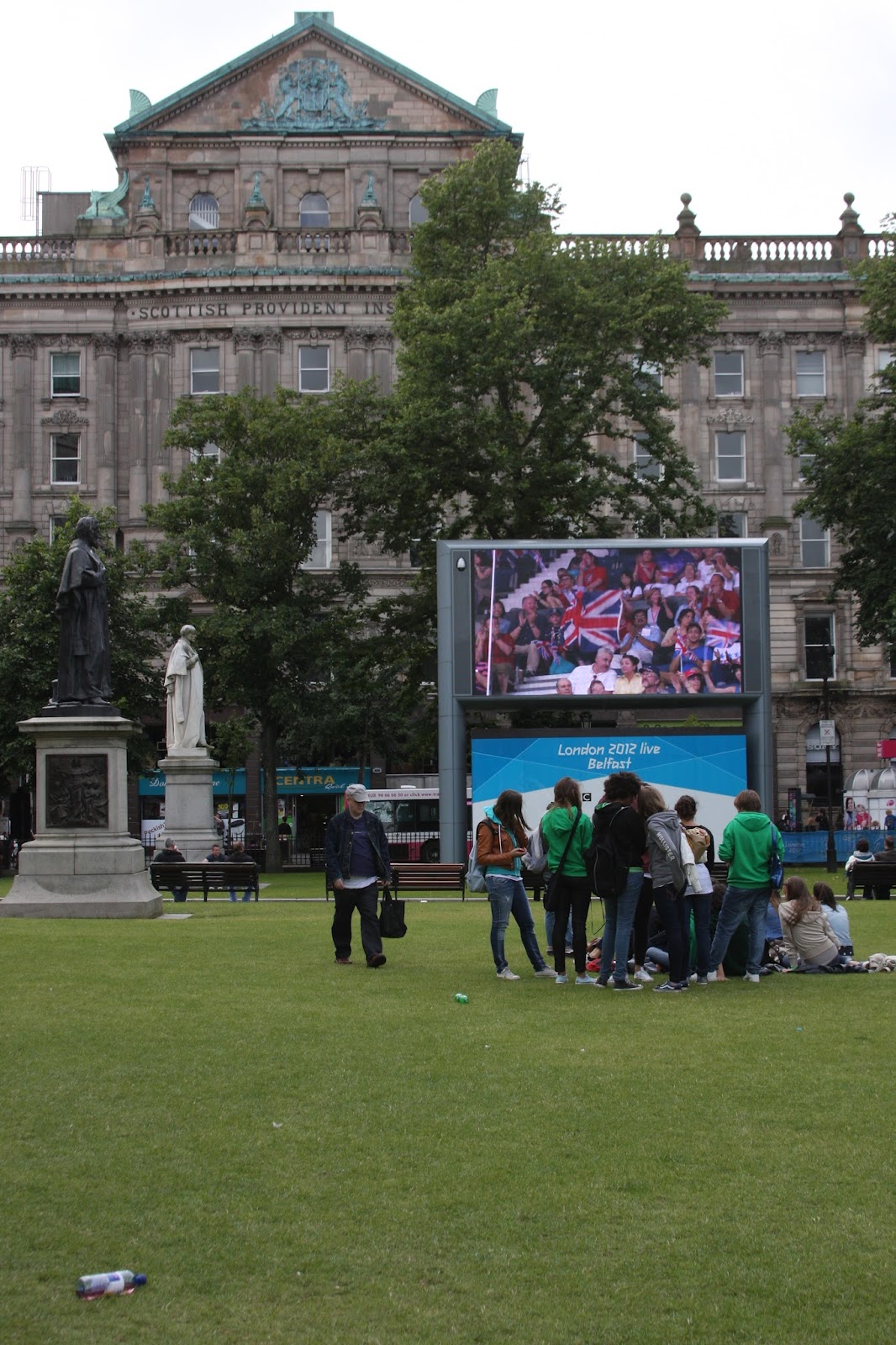 | Giant screen outside the city hall showing the Olympics. |